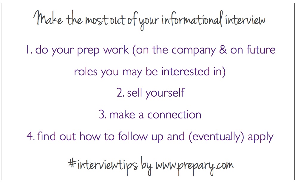 If you take these steps, you will be guaranteed to have a more productive and beneficial informational interview. Make the most out of that time and it will pay off in the future!